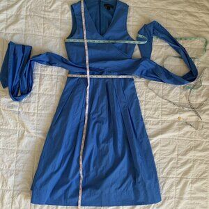 Elegant J.Crew wrap dress in vibrant blue cotton poplin. Designed with a flattering V-neckline, sleeveless cut, and a self-tie waist that highlights your shape. The pleated skirt adds movement and a feminine touch, while the 100% cotton lining ensures comfort.