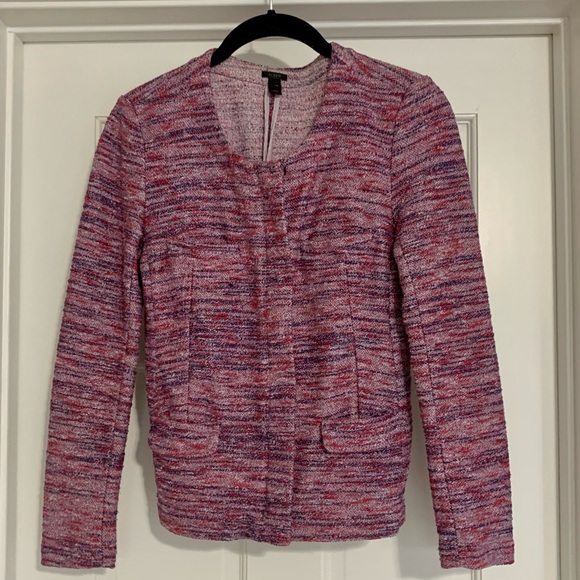 Pink and purple boucle lady jacket. Zippers from top and bottom. Nice weight, not lined.