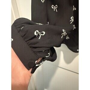 J.Crew Bow Blouse with Ruffle Neck and Velvet Trim Medium Black w/White Bows
