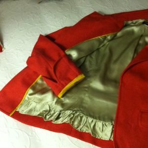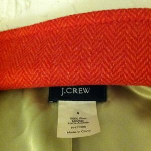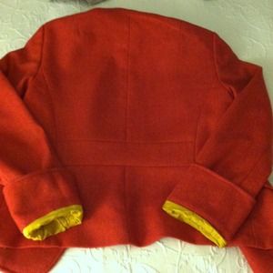 Gorgeous, like new blazer! These photos don't even do it justice. Fully lined, sleeves are lined in marigold for punch when worn rolled up. Single brass hook in front. Tailored fit. Marked as 4 but 6 works too. J.Crew wool blazers are the best quality. Looks red but is a bright pinky orange. So fun!