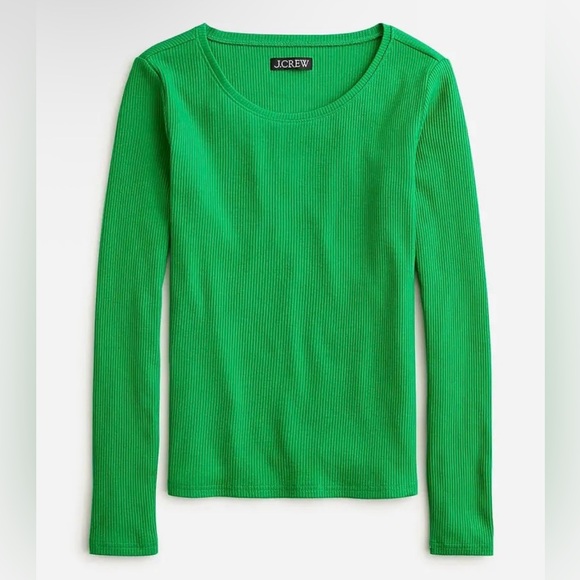 J.Crew ribbed top in a striking green. Long sleeves and classic design.