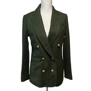 J.Crew Bristol Blazer Jacket Double Breasted Herringbone Wool Green Size 2