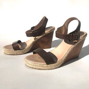 J.Crew Brown Leather Wedge Sandals 10 shoes