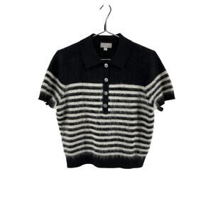 J.Crew Brushed Black Cashmere Short-Sleeve Sweater-Polo Size L