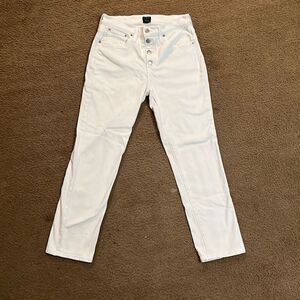 Excellent preowned condition J.Crew Essential Straight Jean. No rips, tears, holes, etc. There’s a small stain on the left side of the back waistband (see last 3 pics as it isn’t even visible in some lighting)