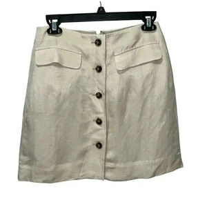 J.Crew Button Front Linen Cupro Blend Skirt Size 2 Womens Tan Lined Fall Wear