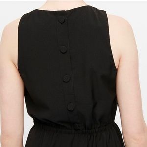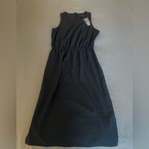 Brand new with tags button back J.Crew black midi dress in size 8. Fitted at waist, zip closure at side, and slits on both sides. Machine wash, lined, and approx 43”