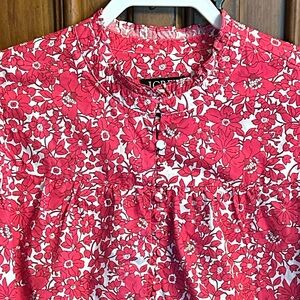 J.Crew Button-Front Ruffleneck Popover In Blushing Meadow Size Small