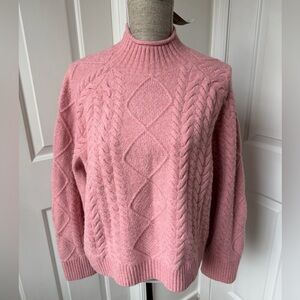 J.Crew Cable-knit Rollneck Wool Blend Sweater Supersoft Yarn Dusty Rose Pink L