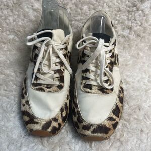 J.Crew Calf hair Animal Print lace up low top Sneakers Size 8 M