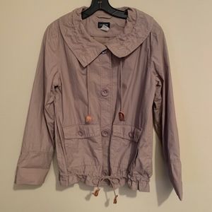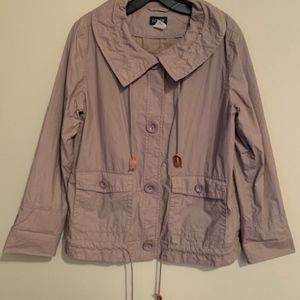 There is a small pin pinpoint spot on the upper right shoulder that is barely visible (I had to use a light on it to get it to show up in the picture) Otherwise this jacket is in great condition.
