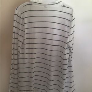 @kdavis629 NOPE!!!! I literally have worn it like twice! It is in perfect condition. If you can't tell by the picture the stripes are navy blue, but when paired with something black they look more black. Let me know if you have any other questions!!!!