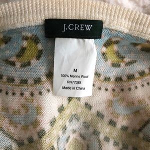 Beautiful green and blue patterned cardigan. J.Crew 100% Merino Wool.