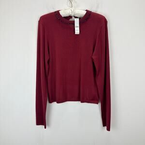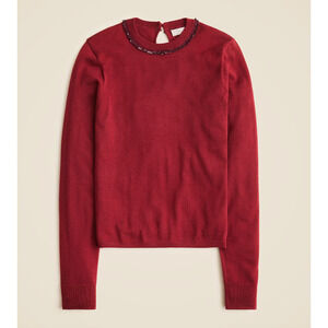 J.Crew Carolyn Embellished Fitted Crewneck Sweater Merino Wool Burgundy L NWT