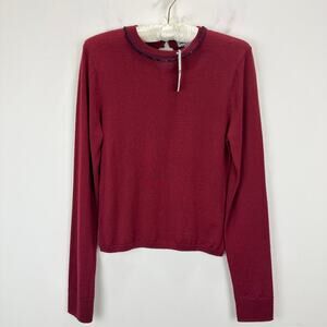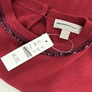 J.Crew Carolyn Embellished Fitted Crewneck Sweater Merino Wool Burgundy M NWT