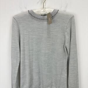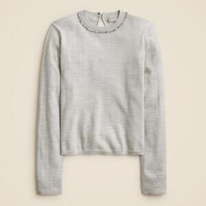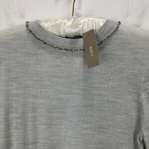 J.Crew Carolyn Embellished Fitted Crewneck Sweater Merino Wool Gray Small NWT