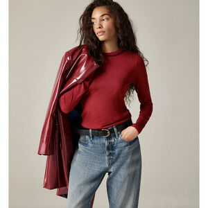 The fit of your favorite tee meets the feel of your favorite sweater. This easy layer sits closer to the body and is incredibly soft to the touch. It's crafted from smooth merino wool with a bit of stretch at the cuffs, so it's warm enough to wear on its own now and light enough to layer later. Plus, this one comes with sequin details along the collar for added shine.