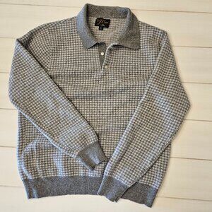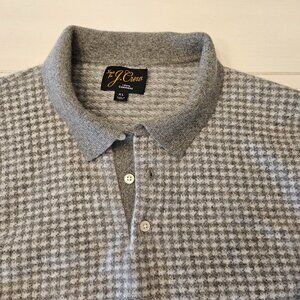 J.Crew Cashmere Collared Grey Houndstooth Sweater-polo - Size XL