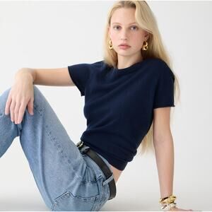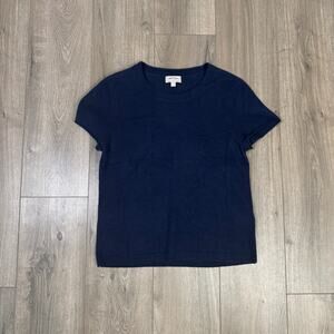J.Crew Cashmere Relaxed T-Shirt WMNS L Navy Blue Crew Neck Short Sleeve Sweater