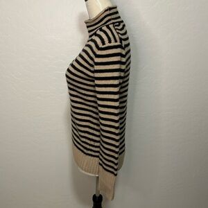 J.Crew Cashmere Wool Black and Tan Striped Long Sleeve Mock Neck Sweater XXS