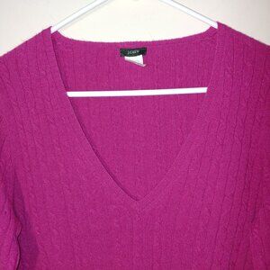 J.Crew Cashmere Wool Blend Cable Knit V-Neck Sweater Size M Fuchsia Pink