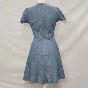 Sleeves have ruched stitching on top of shoulders with cutout and ties on sleeves.