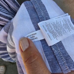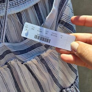 new with tags striped heavy chambray tiered dress with tie straps and pockets. oversized