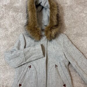 J.Crew Chateau Parka Italian Stadium-Cloth Wool Grey Faux Fur Hood Coat Size 0