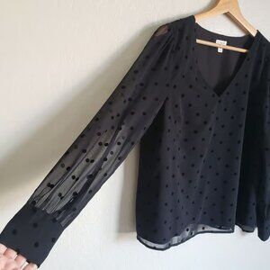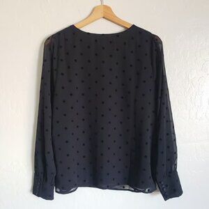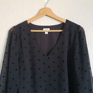 J.Crew Chiffon Polka Dot Sheer Sleeve Blouse Top V-Neck Black Size Womens Medium