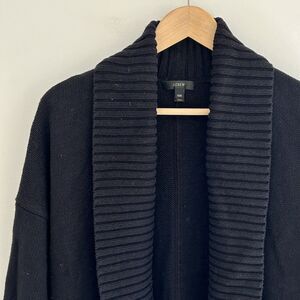 J.Crew Chunky Knit Open Front Sweater Size XS Small Black Pockets Shawl Collar