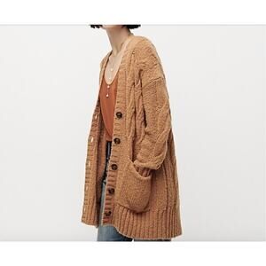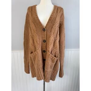 J.Crew Chunky Oversized Cable Knit Button Front Sweater Cardigan Tan Size Small
