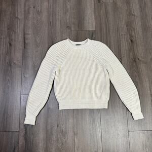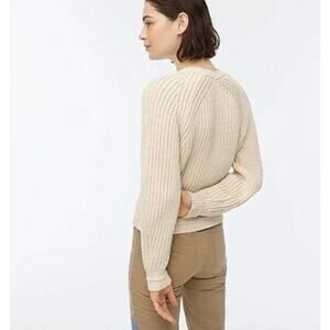 J.Crew Chunky Ribbed Crewneck Sweater WMNS S Cream Pullover Stretch Long Sleeve