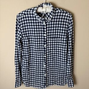 J.Crew women’s Classic Fit Crinkle Gingham button down shirt. Size 4. White base with navy blue gingham. In excellent condition.