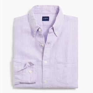 J.Crew Linen Shirt, Men’s Purple Button-Down, Classic Fit Long Sleeve Shirt, Lightweight Linen Button-Up, Casual Linen Shirt, Breathable Linen Top, Timeless Men’s Shirt, Versatile Purple Shirt.