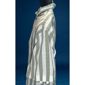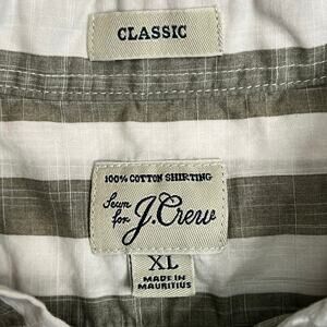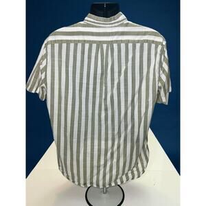 • Description: J.Crew Classic Fit men’s short sleeve button-down shirt. Featuring a stylish green and white vertical stripe pattern, this shirt is crafted from 100% lightweight cotton — part of the Re-Imagined collection, inspired by the planet and its people. Perfect for casual outings, workdays, or summer events.