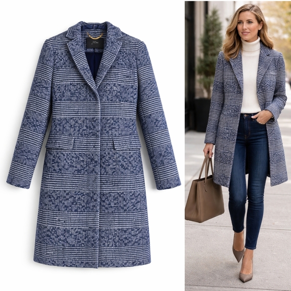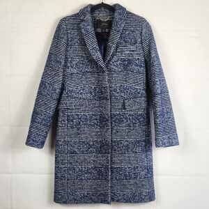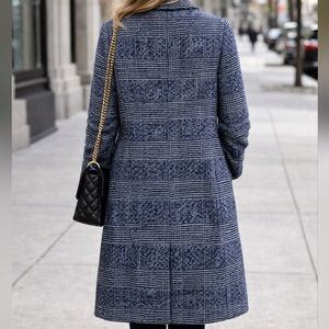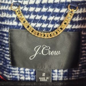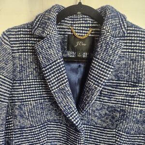 J.Crew Classic Preppy Winter Wool Blend Tailored Topcoat Navy Blue Plaid 2