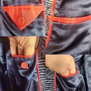 -Fully lined in smooth navy satin