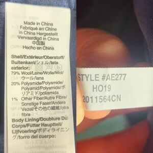 -79% wool, 20% polyamide, 1% other fiber; Lining: 100% polyester