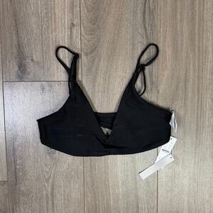 J.Crew Classic Sculpt Lana Bikini Top SZ M Black V-Neck Removable Pad Adjustable