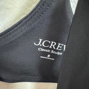 J.Crew Classic Sculpt Lana Bikini Top Women’s Size Small – Ci681, Black Colorway, Deep V-Neckline, Adjustable Shoulder Straps, Removable Soft Pads, Clean Pull-On Design, Sculpting Stretch Fabric, Supportive and Flattering Fit, Smooth Finish, Minimalist Styling, Ideal for Poolside Lounging, Beach Days, or Vacation Looks.