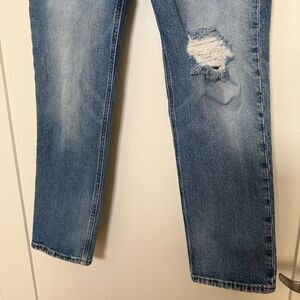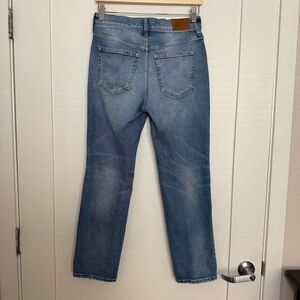 J Crew Classic Straight Jeans Womens Sz 26 Blue Distressed Denim Stretch Retro