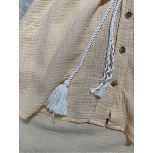 No rips or stains but rope tie belt shows unraveling on one side. Please see photos and use zoom.