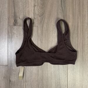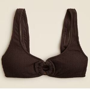 J.Crew Claudia O-ring Scrunchie Bikini Top SZ L Inky Espresso Textured Pullover