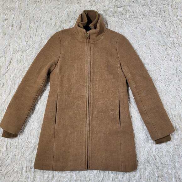J.Crew Coat Womens 0 Lodge Italian Wool Camel Heather Acorn Zip Up Coat #K0896
