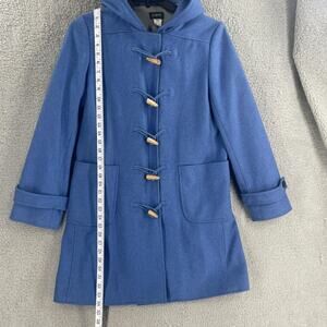 J.Crew Coat Womens Medium Blue Hooded Toggle Duffle Wool Blend Lined Pockets