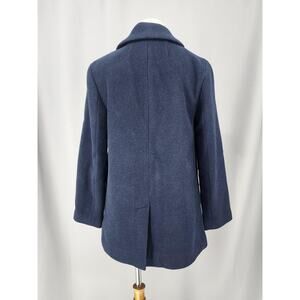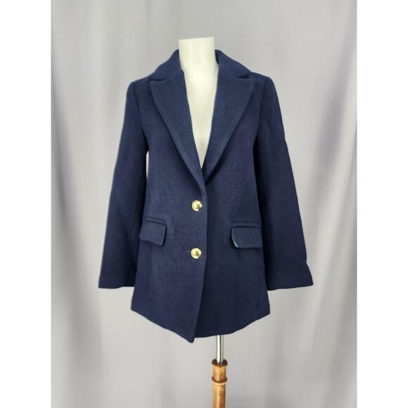J.Crew Coat Womens Petite P00 Navy Blue Wool Blend Overcoat Gold Button Lagelook