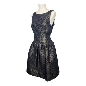 Fit & Flare style, brocade fabric. Navy Blue and Gold.