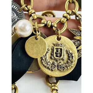 J.Crew Coin Charm Necklace Crystal Star Black Chunky Gold Heavy Rare Unique Disc Silver Faux Pearl Blue Gem Statement Black Bow