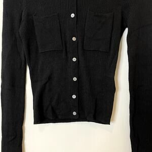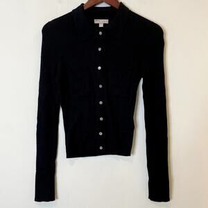 Good Womens J.Crew Collared Button Up Sweater Merino Wool Blend Ribbed Date CK393 Black Medium FLAW
