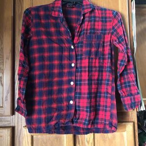 J Crew Collared Mixed Plaid Flannel Button Front Pajama Top - XS